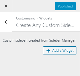 16. Now you will see a sidebar that is created, click on it. Then click on Add a Widget button and you will see a list of widgets.